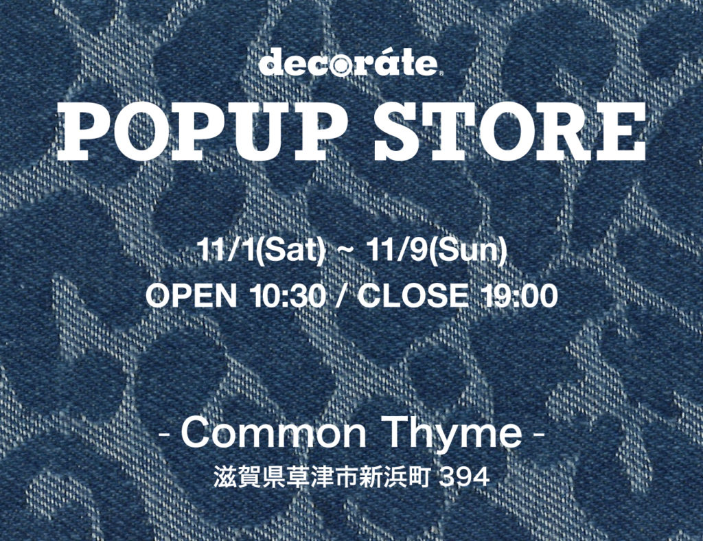 滋賀県草津市の インテリアと暮らしのセレクトショップ Common Thyme にて、decoráteポップアップストア イベントを開催します。