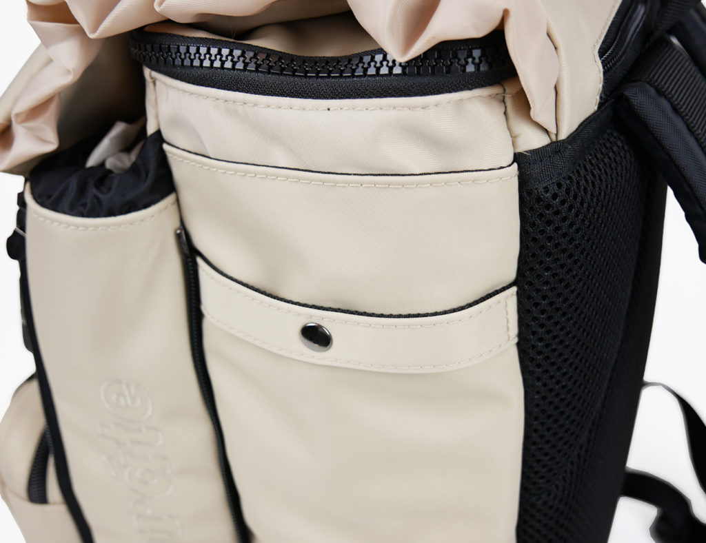 そんなメインコンパートメントの外側には、両サイドにファスナーを備えたサブコンパートメントが。